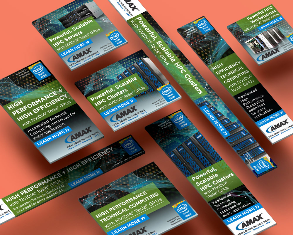 Samples from a Google display ad product campaign, designed in a variety of standard dimensions and orientations.